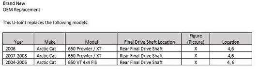 Arctic Cat Final Drive Shaft U-Joint 0402-944, 1402-462