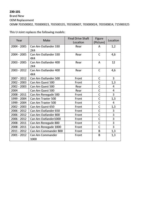 Can Am Outlander Renegade Quest Commander 500 650 800 1000 Final Drive Shaft U-Joint Set