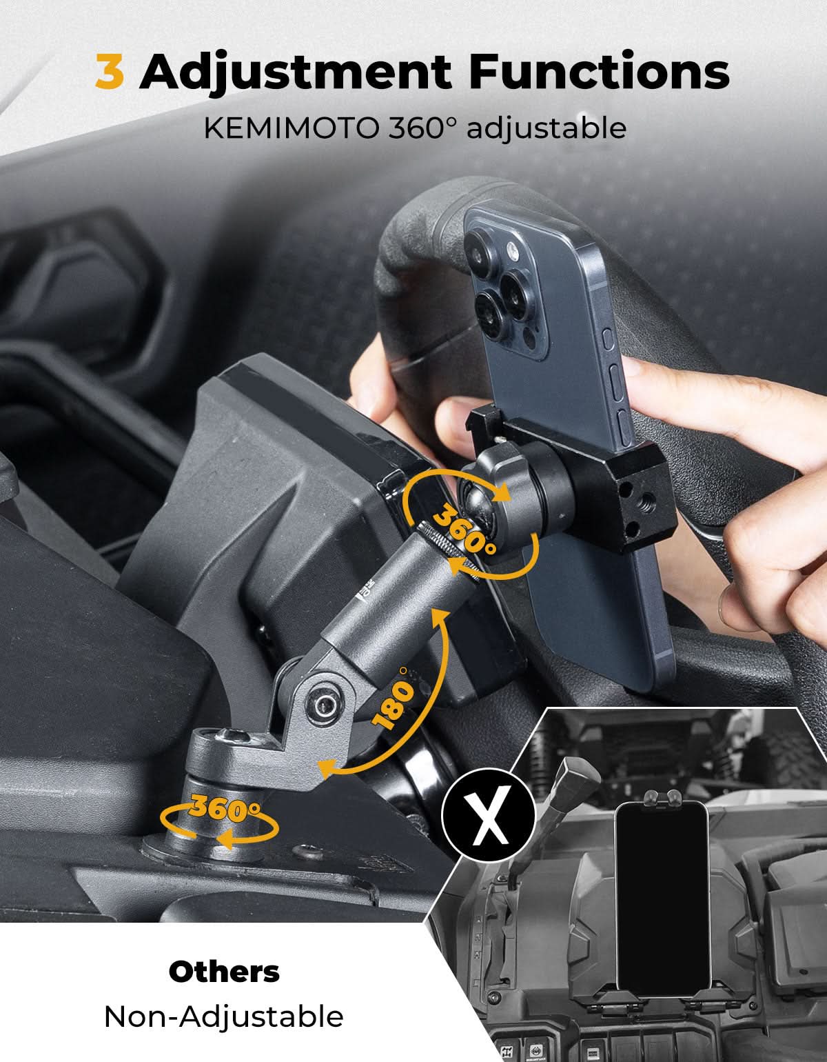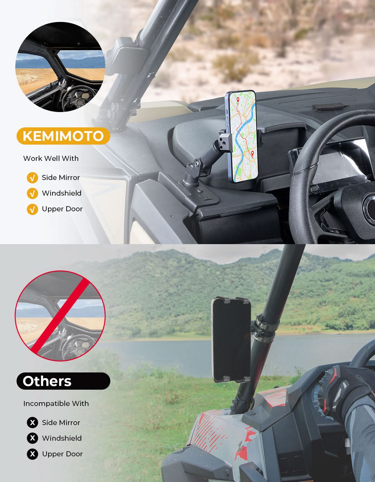 KEMIMOTO - Aluminum Phone Mount for 2023+ CFMOTO ZForce 950 Sport | 800 Trail