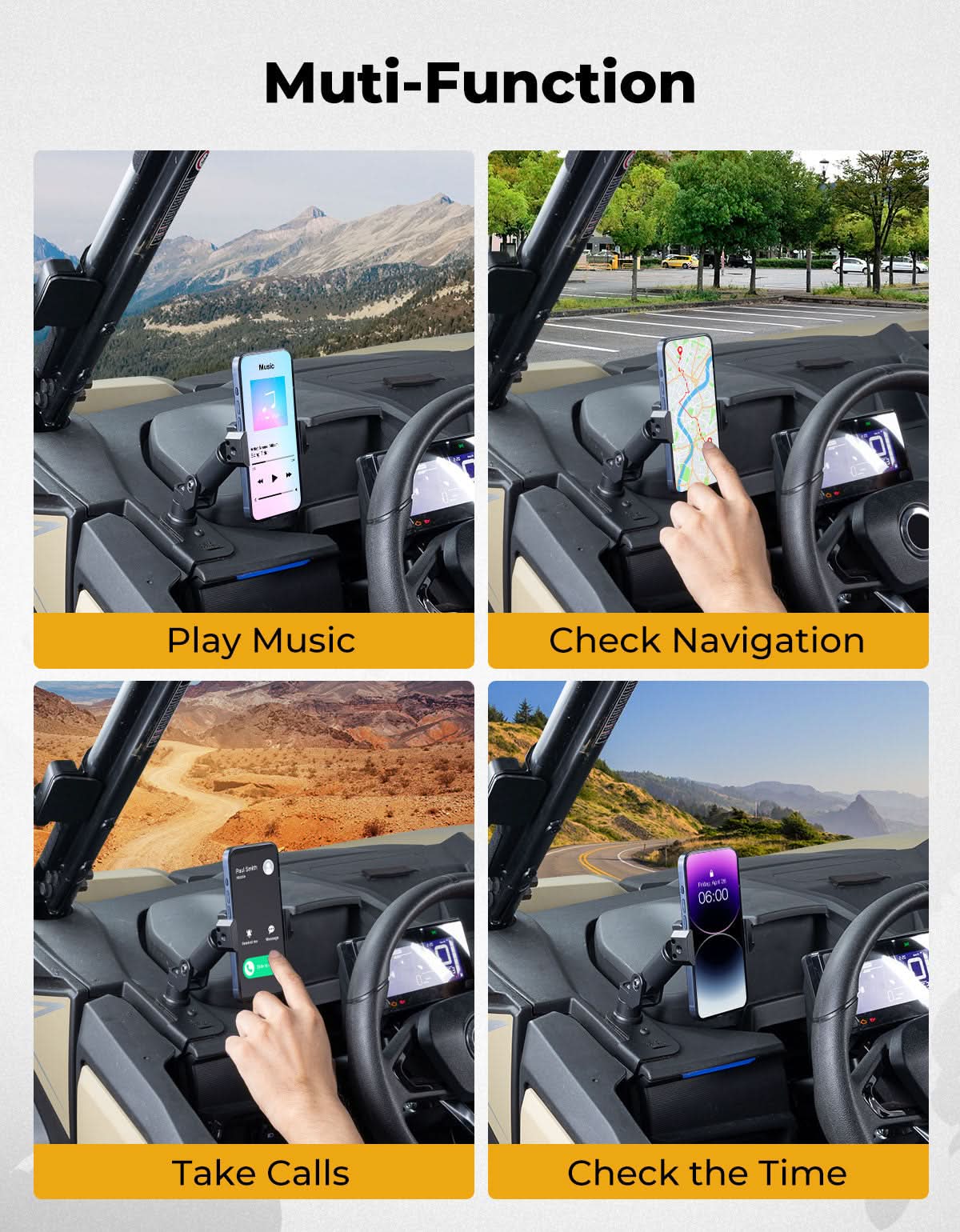 It can securely hold your phone, making it convenient for navigation, taking calls, playing music, and checking the time. Installation takes less than 5 minutes, so you can get on the road fast.