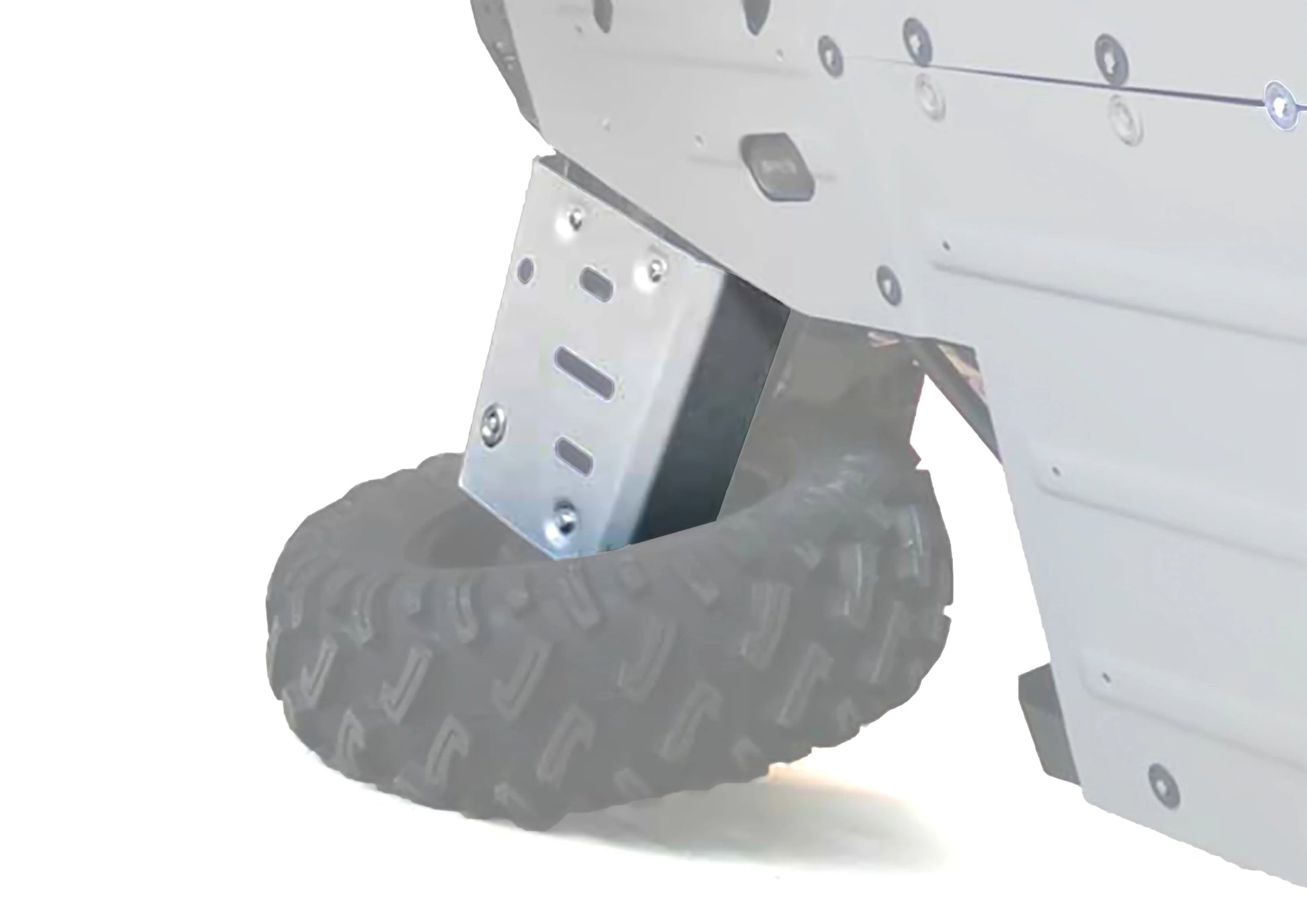 One of the most vulnerable and less protected parts of your Polaris General / 4 is your A-arms and CV joints. But you can protect both with our 5/32'' Marine grade Aluminum A-Arm Protectors. With a high folded front edge that protects your A-Arms from impact and your CV Boots from sticks hitting and tearing and letting dirt in there to wreck the joints. We also have drain holes on the underside to let dirt, grass seed, and sand that has built up to fall out or be washed out. Our A-Arm Guards utilize both factory mounting points and steel brackets to give maximum strength when mounting. We also use a stamping procedure to allow extra strength for the A-Arm Guard and for our high strength bolts to be recessed to allow a flat surface for sliding over any obstacle you might come across on the trail. PART NUMBER ONLY INCLUDES REAR A-ARM GUARDS