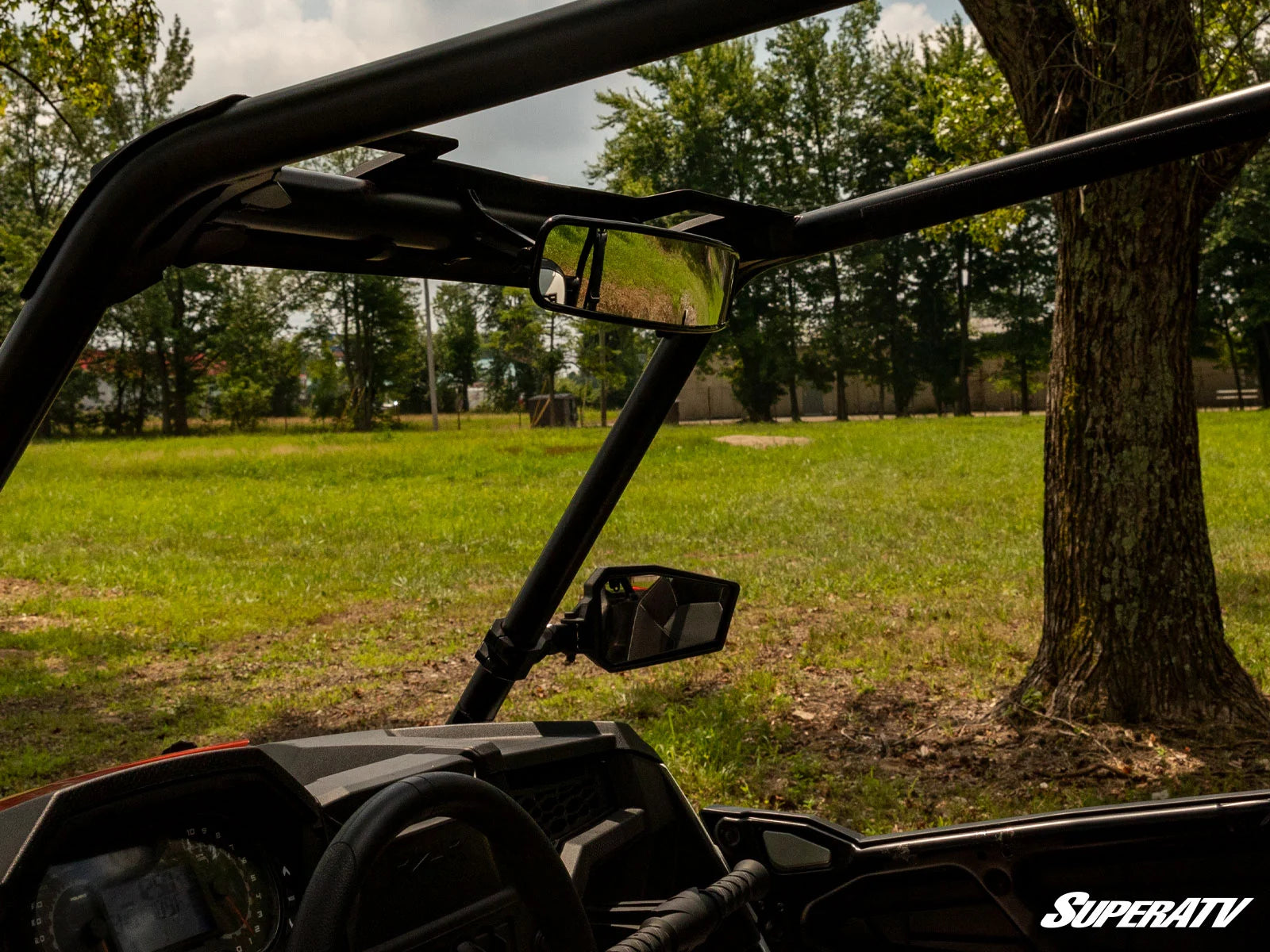 SuperATV’s 17” Rear View Mirror lets you see more so you can do more with your UTV. When you’re strapped into your harness and can’t look around to see what’s behind you, you need a good, wide angle mirror to see who you’ve left in the dust. Our rear view mirror is 17” x 3” and is convex so no rocks or racers can sneak up behind you.