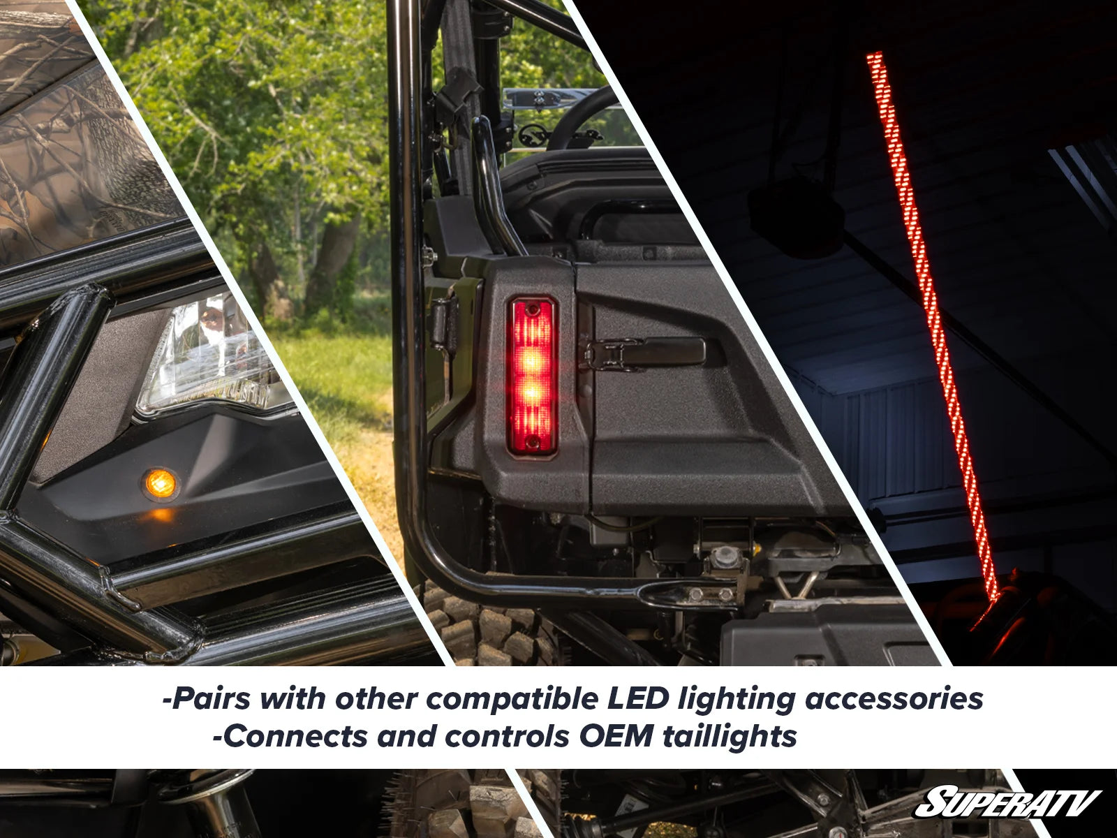 You get four amber-colored LED indicator lights—two for each side of your Pioneer’s front end. Your signals will be clear from head-on or from either side. They sync with your OEM taillights to turn them into rear turn signals too.