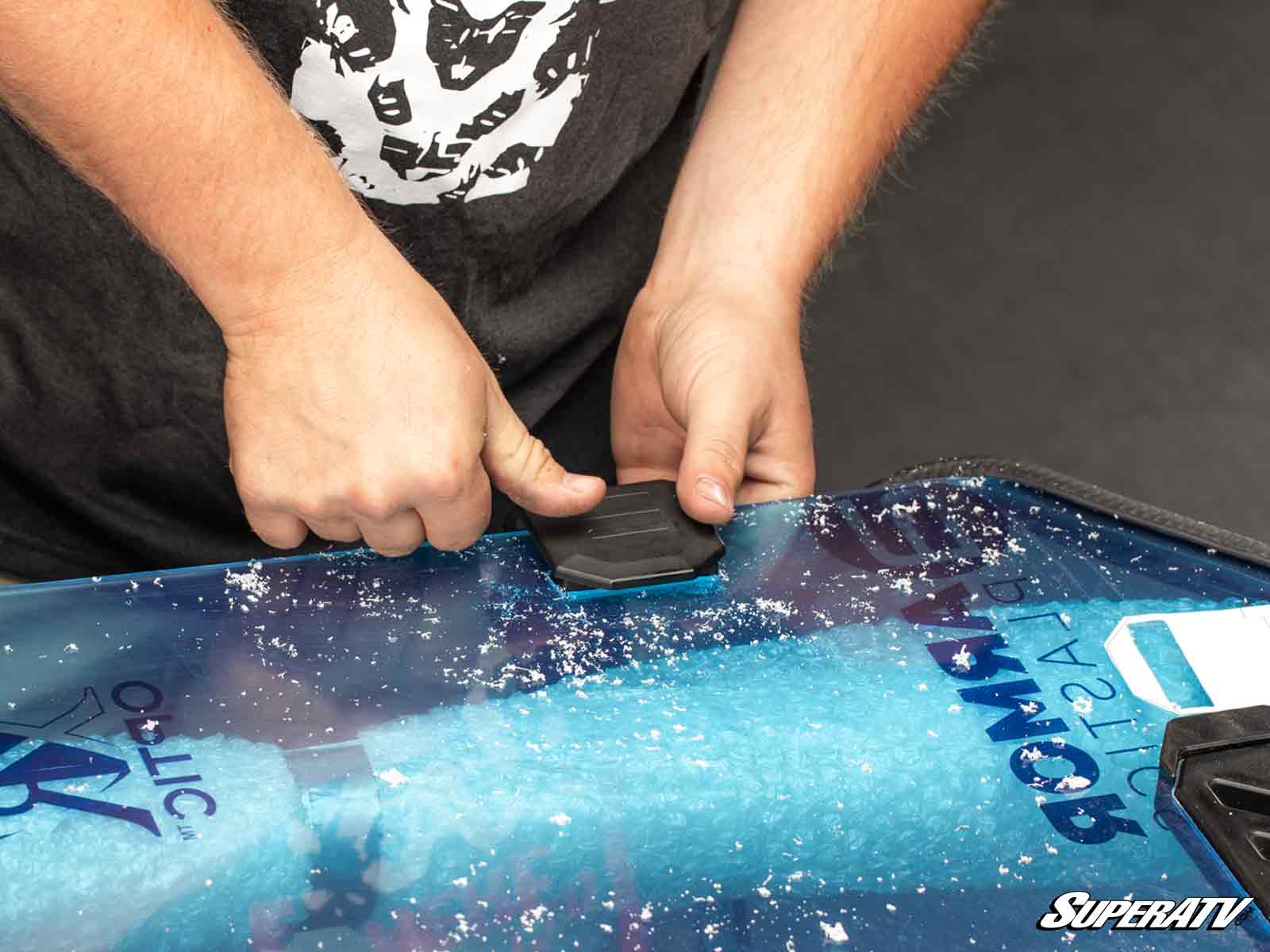 NOTE: Make sure to wear protective gear and follow all safety protocols when cutting this windshield.